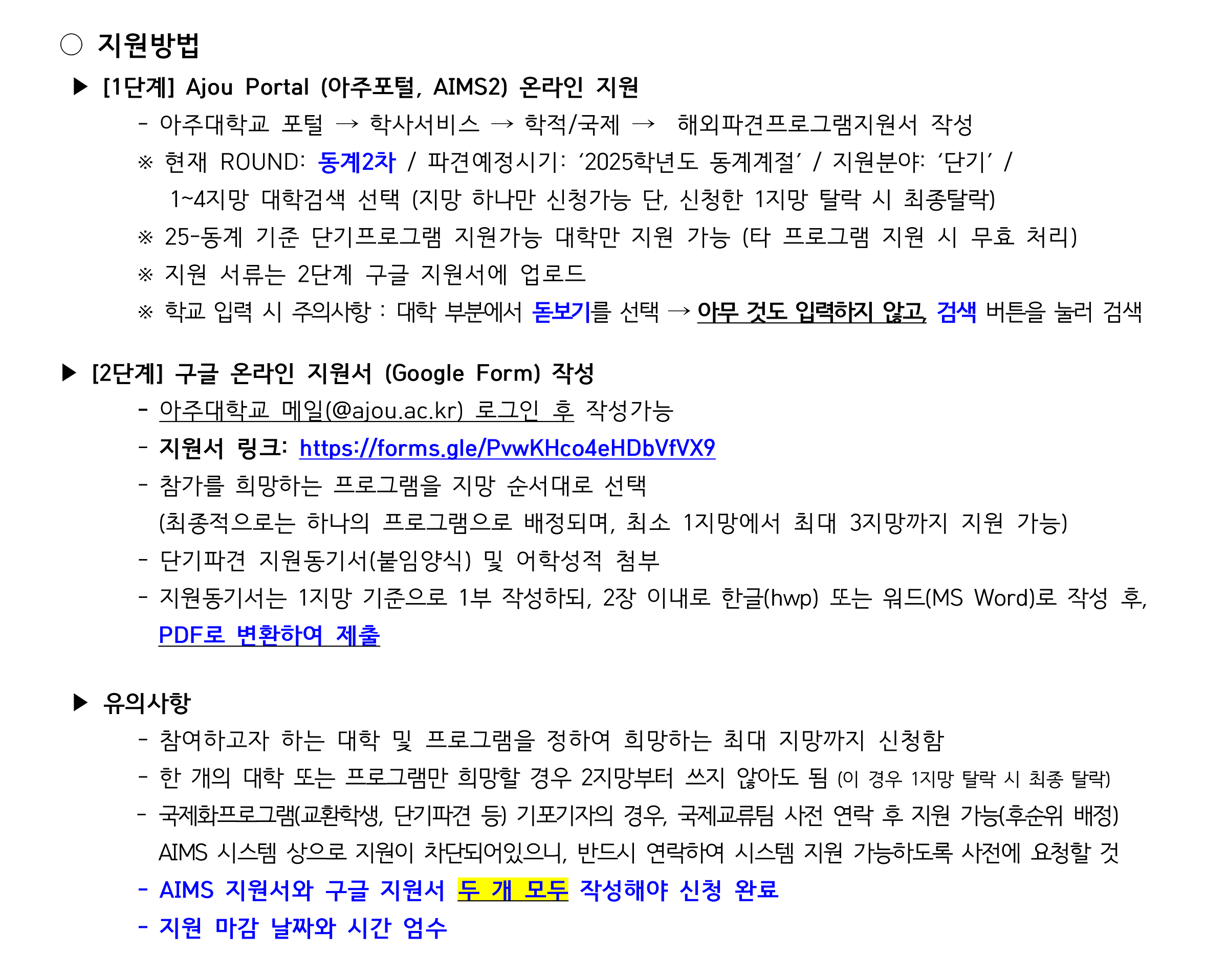 2025.10.27.(월) 15:00 ~ 2025.11.02.(일) 23:59까지 | 지원서 작성 (★아주포털 및 구글폼(지원동기) 꼭 2개 모두 작성!